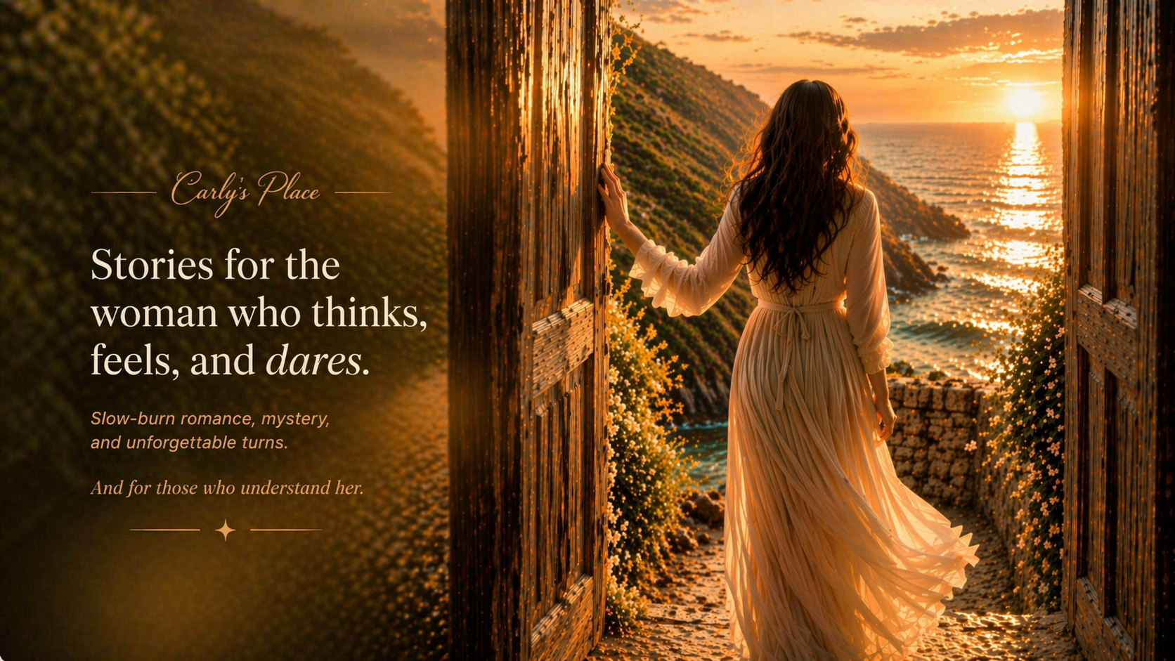 If you love a story you can truly experience in one sitting, you’ll feel at home here. My novels are crafted to be lived in a single evening—about 165 pages, 35,000 to 40,000 words—complete romantic mysteries you can fall into and stay with until the final page.